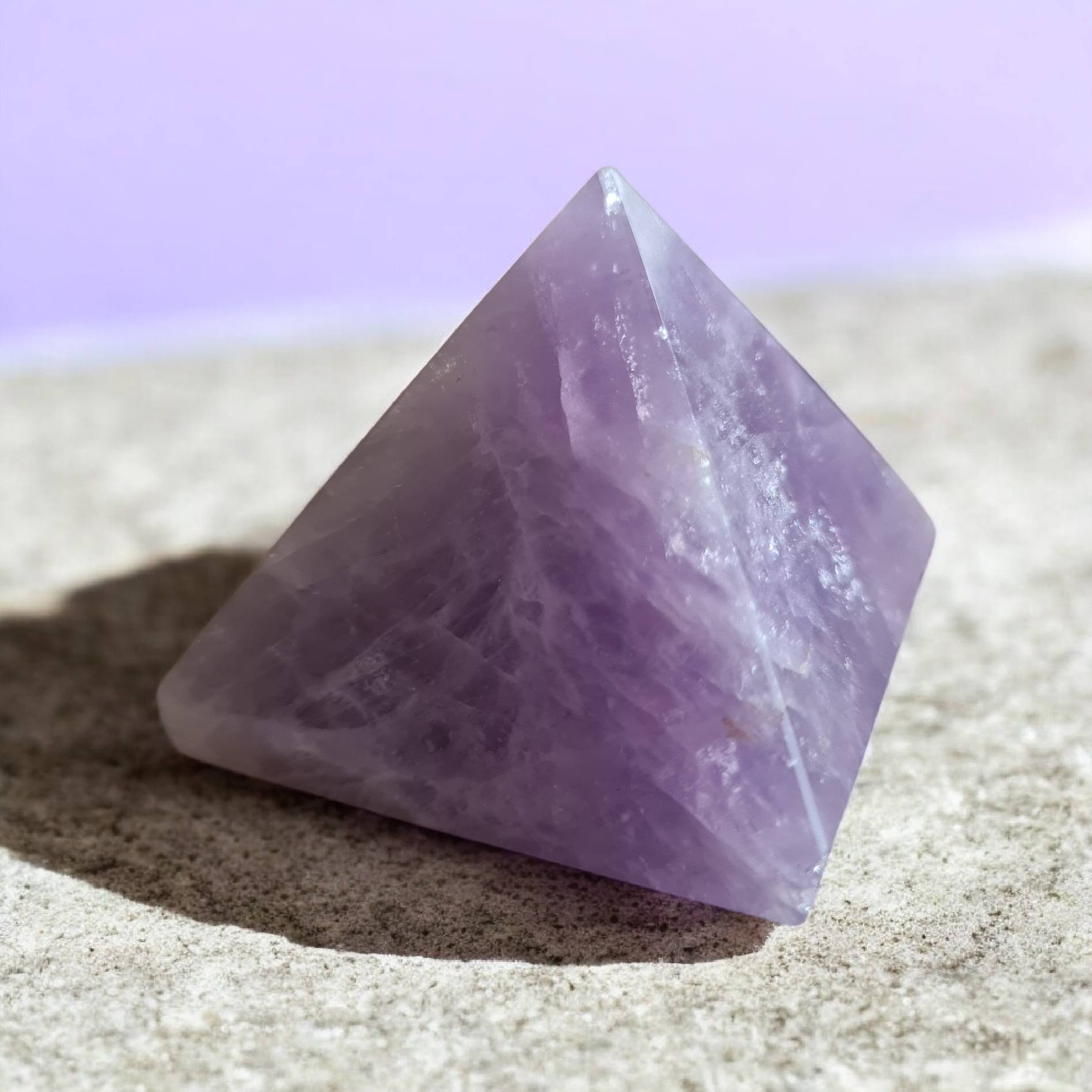Een Amethist piramide in huis of op je werkplek helpt je om je geest helder te houden en negatieve invloeden buiten te houden.