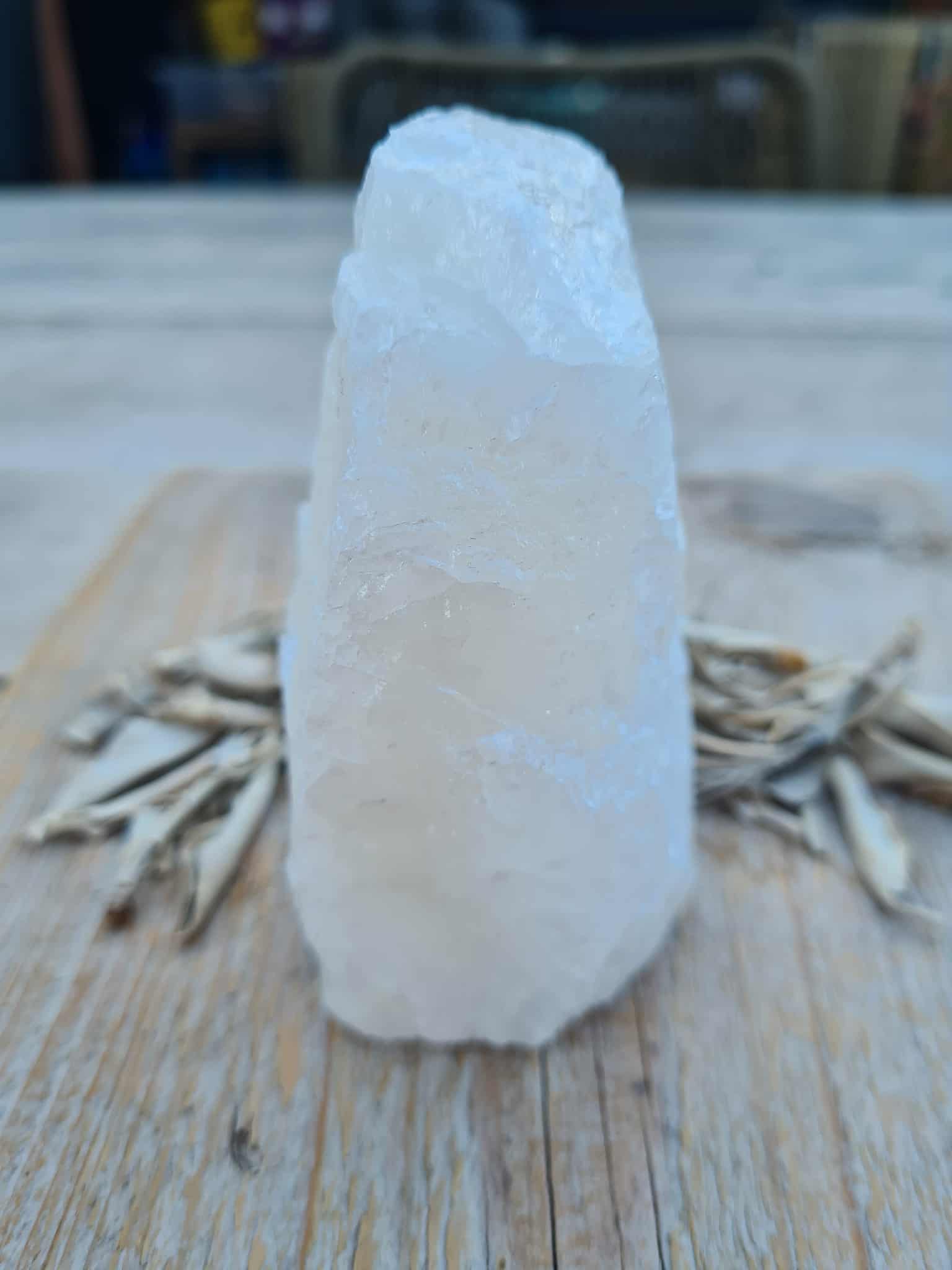 ca 11 cm hoog 353 gram ‘Ik ben een spirituele reiniger” De Bergkristal is het kristal wat je gebruikt als je bezig bent om op spiritueel niveau te reinigen en te genezen. Tijdens healingen zorgt bergkristal dat de overtollige en vervuilde energie wordt afgevoerd of dat heldere en opladende energie het systeem wordt toegevoegd. De steen brengt chakra’s weer in balans en de chakra’s worden gezuiverd. Je energetische lichaam wordt beschermt tegen negatieve invloeden van mensen en straling van verschillende aard. Bergkristal stimuleert of kalmeert, afhankelijk van wat er nodig is. Het brengt harmonie en balans. Het zorgt voor een…