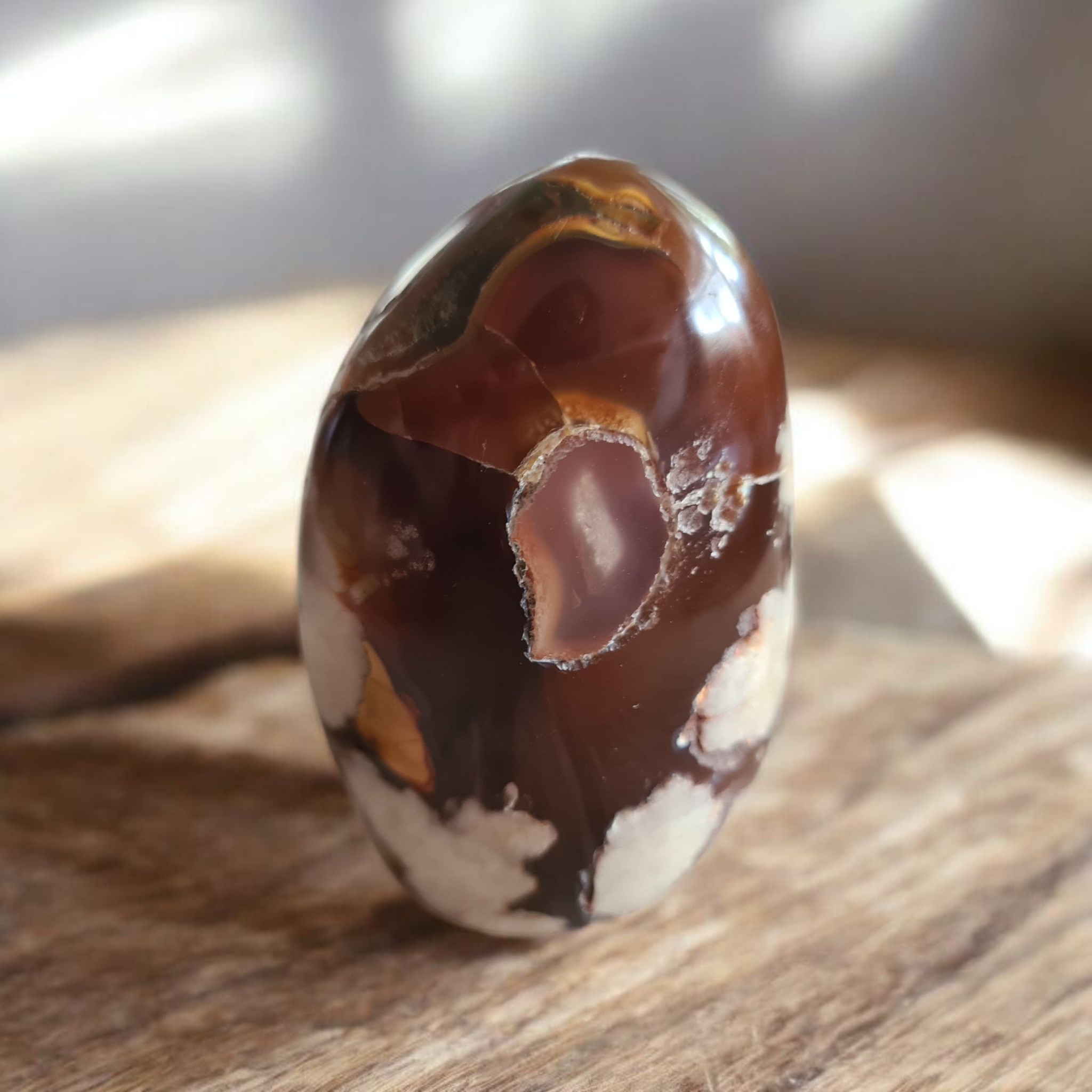 Het is fossiel koraal geconserveerd in een transparante steen, waardoor er prachtige bloemenpatronen ontstaan. Deze bijzondere en liefdevolle steen geeft troost en beschermt tegen angsten. Flower Agaat geeft rust, ontkrampt het lichaam en geeft deze ook kracht, ondersteunt bij een burn-out. Het zorgt voor acceptatie, zelfvertrouwen, een betere concentratie en moedigt oprechtheid en het spreken van de waarheid aan. Zeer goed voor mensen die zich onbegrepen voelen. Flower Agaat leert je in het Nu te leven, moedigt je aan helemaal jezelf te zijn en leert je niet meer bang te zijn om afgewezen te worden. Je mag het leven in volheid en liefde leven en met minder geen genoegen nemen. Deze prachtige steen helpt je om alles los te laten wat je hogere goed niet meer dient en in vrede en acceptatie te leven. Dit met de hulp van Lichtwezens, Engelen en je hogere zelf die met dit kristal verbonden zijn. Flower Agaat heeft een helende, vrouwelijke energie. Het is ook een aardende steen die je lichaam reinigt en voor fysiek, emotioneel en intellectueel evenwicht zorgt. Deze lieve steen maakt zacht, opent je hart en helpt verbittering, woede en negativiteit uit je systeem te laten stromen. Tevens geeft het je moed om opnieuw te beginnen. Spiritueel verhoogt Flower Agaat je bewustzijn. Het is een steen met grote helende eigenschappen. De zachte energie werkt kalmerend en is goed voor je gemoedsrust. Deze mystieke steen helpt je om in contact met je hogere zelf te komen, waardoor je steeds meer stukjes van jezelf gaat ontdekken, maar ook de ander beter begrijpt. Ondersteunend voor de spijsvertering, de maag, de ogen, blaas, seksuele organen en de baarmoeder. De botopbouw, keel, longen, angina, verkoudheid, ontstekingen, zenuwstelstel, reumatische aandoeningen, emotie en verdriet. Ondersteunt en reinigt het lymfstelsel, de bloedvaten en bij huidaandoeningen. Helpt beter te slapen en bij enge dromen.