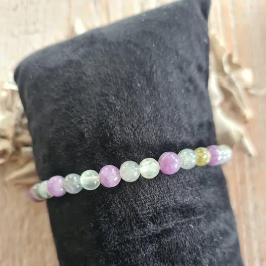 Prachtige elastische armband bestaande uit lepidoliet -, labradoriet – en prehniet kralen (6mm) afgewerkt met een zilverkleurige rvs kraal. Deze drie edelstenen kunnen ondersteuning bieden bij hyperactiviteit en hoogsensitiviteit. Ze kunnen tevens bijdragen aan meer balans en concentratie.