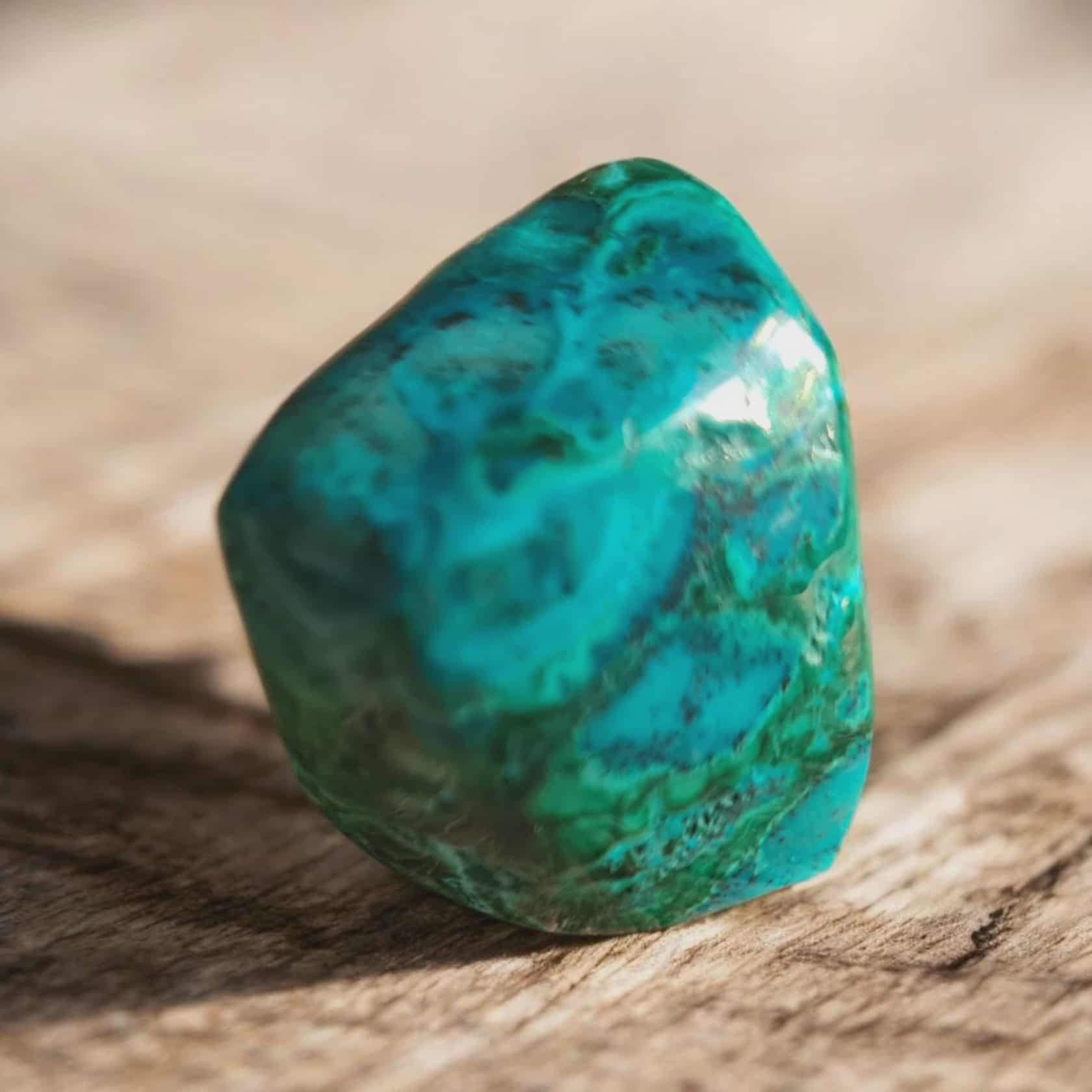 Malacolla is een steen met een zeer hoge, genezende vibratie die tevens oude wijsheden in zich heeft. Deze combinatie symboliseert heelheid en vrede. In een onevenwichtig gebied geplaatst herstelt het langzaam de balans. Het is een zeer geneeskrachtige reiniger van het emotionele lichaam die trauma’s helpt op te heffen. Beschermt krachtig tegen negativiteit, straling en vervuilende stoffen. De steen bevat de ‘mannelijke’ of yang energie van koper die de steen groen kleurt, deze helpt om actie en ideeën vorm te geven en om te creëren en de zachte energie van het blauwe Chrysocolla die helpt bij meditaties en communicatie. Hij stimuleert de zonnevlecht en helpt je wensen en dromen te creëren en manifesteren. Op het derde oog gelegd opent het paranormale visie en op het keelchakra verbetert het niet alleen de communicatie met helpt je ook in te zien wanneer je dient te zwijgen. De steen maakt vastberaden en zelfverzekerd, helpt je trouw te blijven aan jezelf. Malacolla is goed bij krampen, vrouwelijke organen en vergemakkelijkt bevallingen, verlaagd de bloeddruk, goed bij astma, artritis, epilepsie, gezwollen gewrichten, tumoren, wagenziekte en duizeligheid, ook de milt en de alvleesklier. De steen versterkt het immuunsysteem en stimuleert de ontgiftende werking van de lever. Verwijdert negatieve energieën in huis. Goed voor relaties. Kalmeert en reinigt alle chakra’s en geeft ze nieuwe energie. Malacolla verwijdert schuldgevoel, geneest hartzeer en moedigt zelfbewustzijn aan en geeft vreugde. Goed bij fobieën, artritis, spierkrampen, maagzweren, longproblemen, lever, nieren, darmen en bij diabetes. Ook ondersteunend bij menstruatiepijnen, overgangsproblemen en hormoonschommelingen. Malacolla ontkrampt het borstgebied waardoor men zich minder benauwd zal voelen en vermindert kramp in de benen. Goed voor de botopbouw van tanden, kiezen en botten.