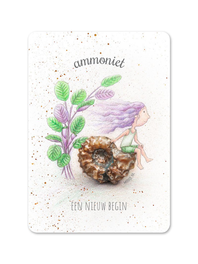 Ammoniet is een prachtig symbool voor ontwikkeling en een nieuw begin. Maakt je ervan bewust dat je het heden zelf kunt beïnvloeden en helpt angsten loslaten. Werkt aardend en tegen negatieve energieën.