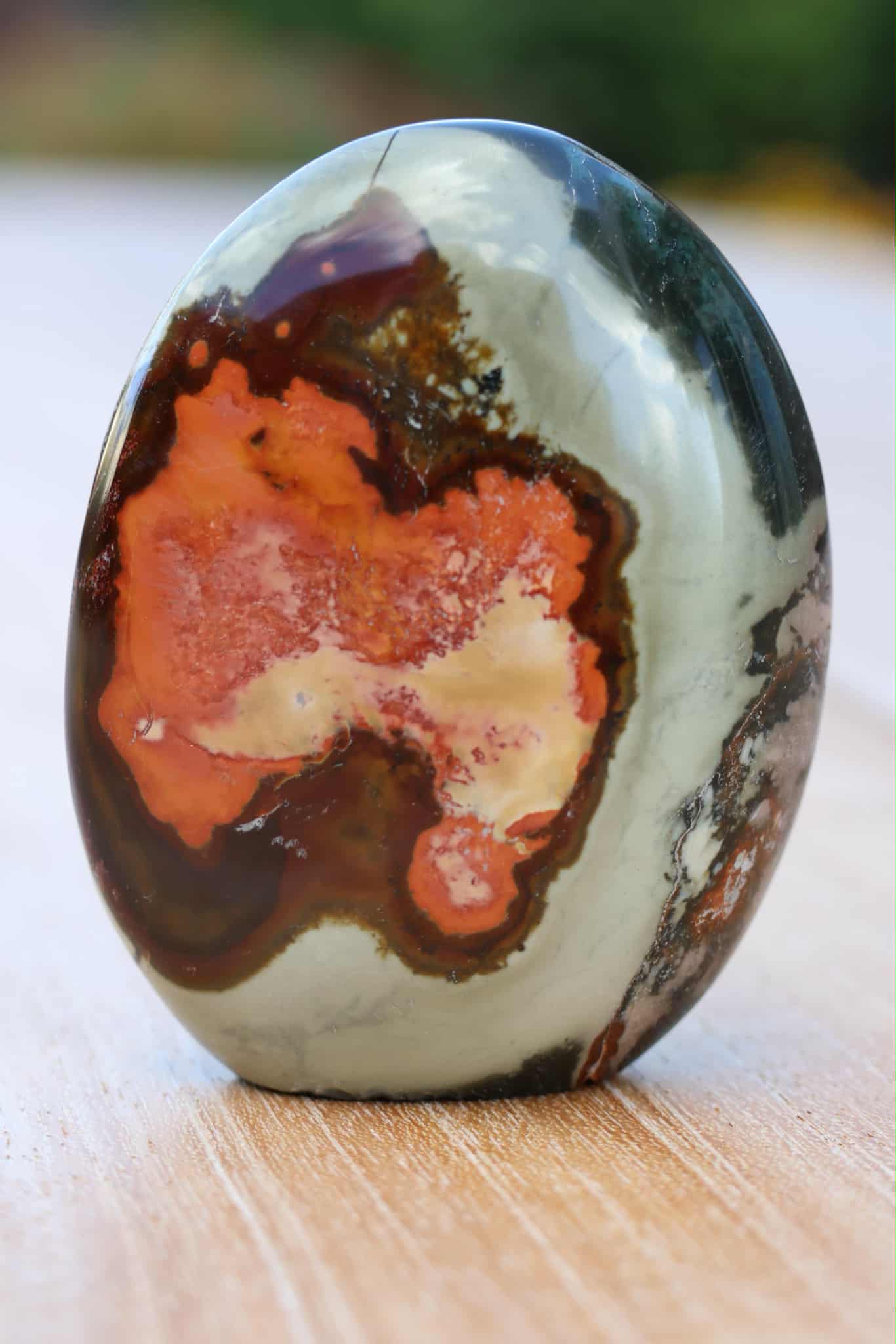 Polychroom Jaspis uit Madagaskar zorgt voor harmonie tussen lichaam en geest waardoor je meer levensvreugde gaat uitstralen. Hij helpt je de waarheid te spreken, maakt je minder egoïstisch en verhoogt verdraagzaamheid.