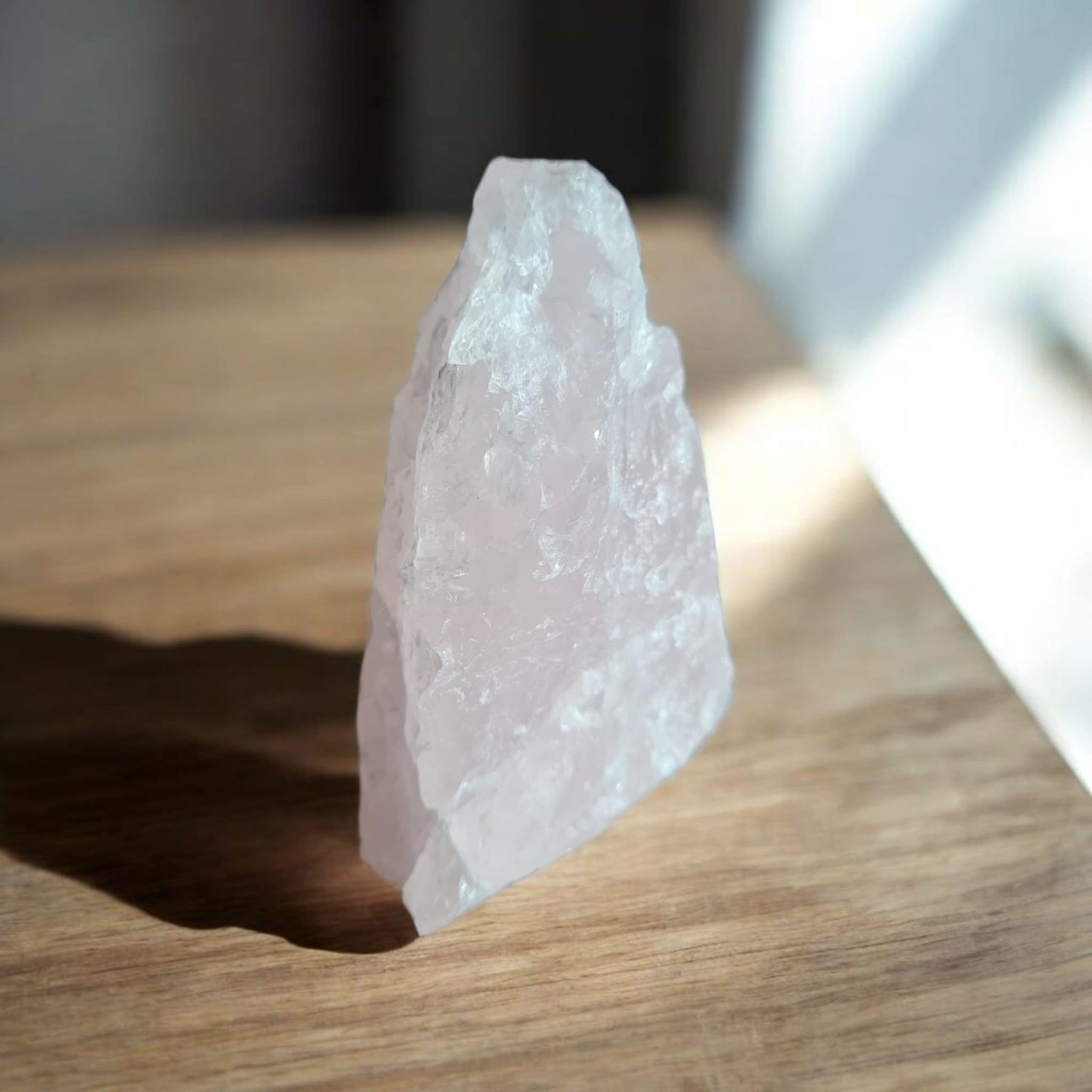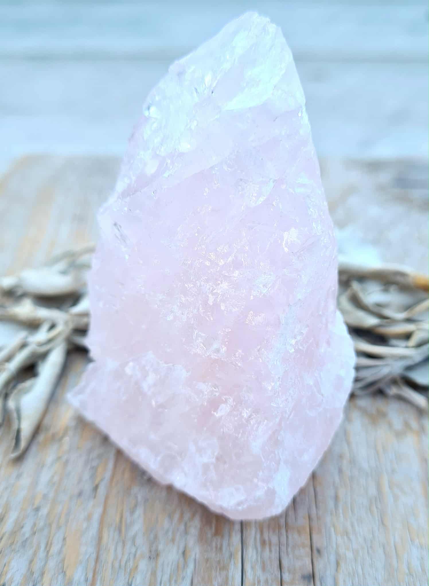 Een stuk Rozenkwarts in een ruimte schept een sfeer van harmonie, liefde en rust.