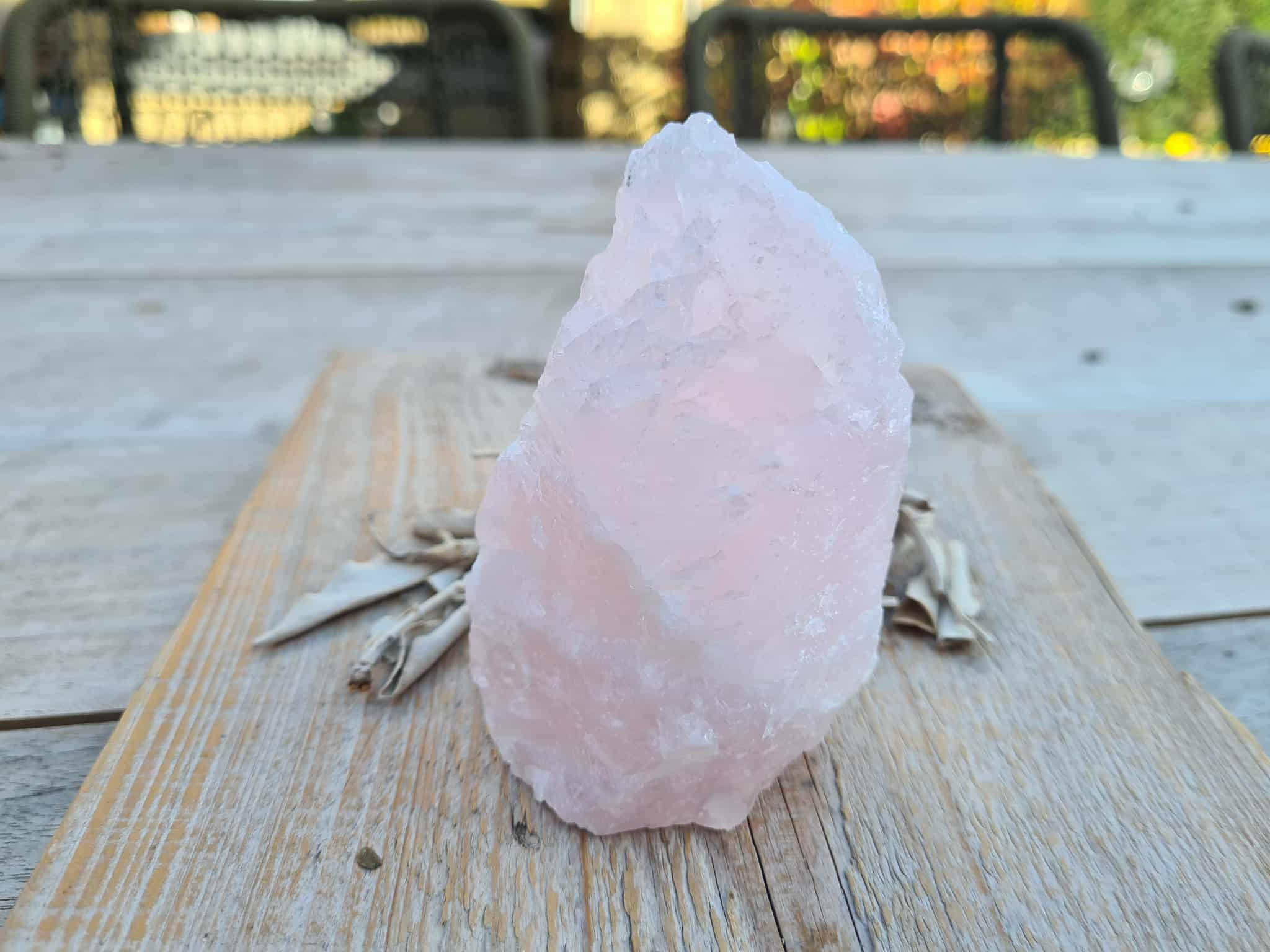 Een stuk Rozenkwarts in een ruimte schept een sfeer van harmonie, liefde en rust.