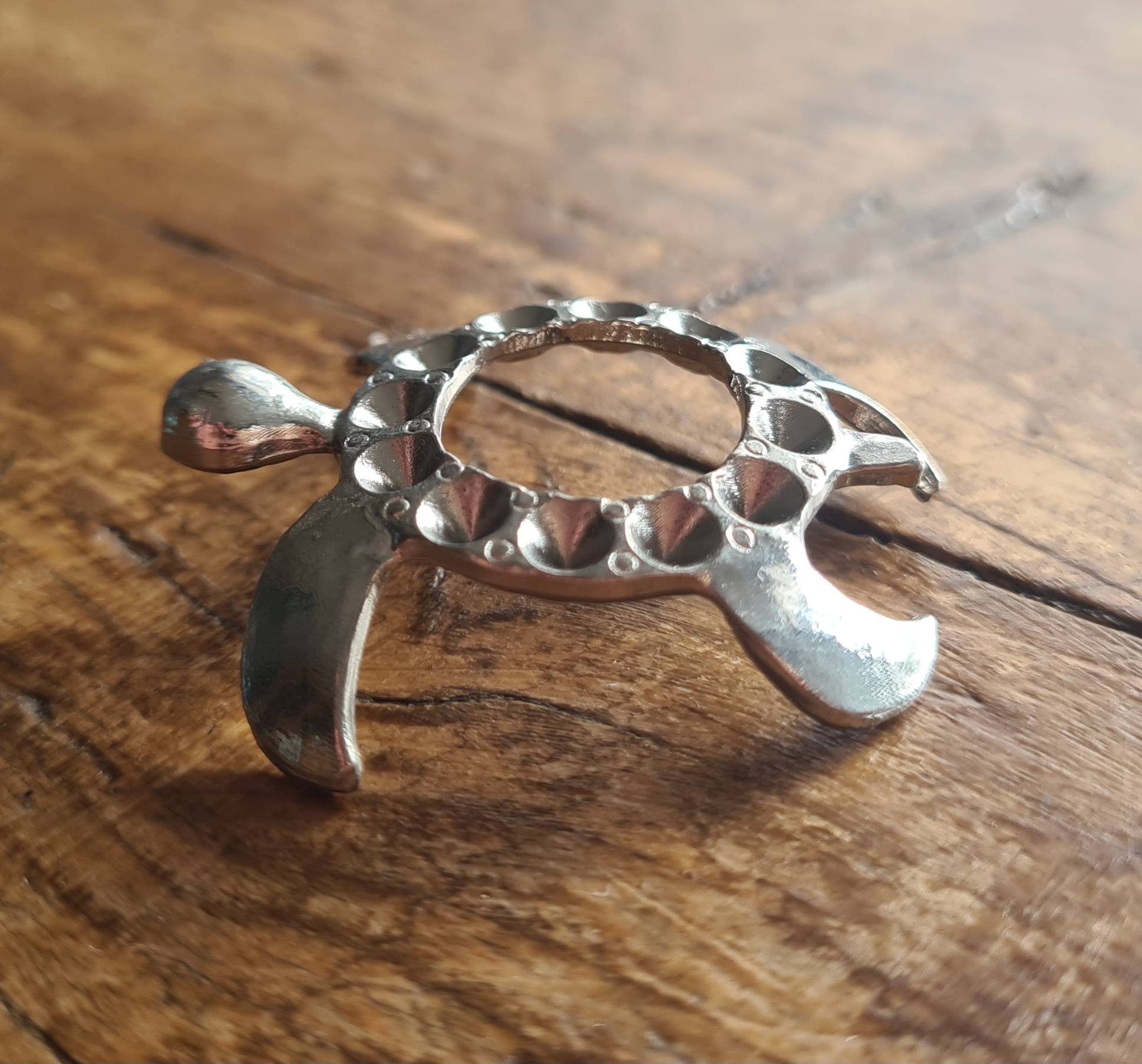 Hoe leuk is dit zilverkleurige standaardje in de vorm van een schildpadje